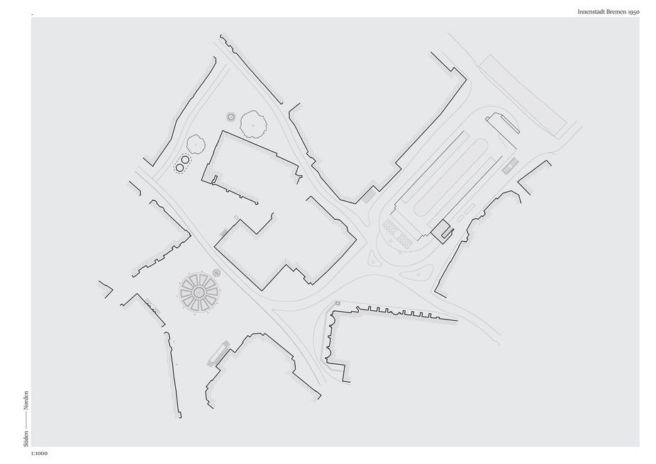 Die Bremer Innenstadt lässt sich in vielen Bereichen als Serie von Plätzen und Höfen lesen, die vielfach durch Ausstülpungen als Nischen und Taschen gekennzeichnet sind. Als besonders gutes Beispiel, mit jenen Charakteristika, gilt die im Zentrum der Innenstadt gelegene Situation von Domshof, Marktplatz und Unserer Lieben Frauen oder Blumenmarkt. Gesprochen kann hier eher von einem kontinuierlichem Platzgefüge werden. In Folge gewinnen besonders die Übergänge und Transitionen zwischen den verschiedenen Räumen an Bedeutung. Weitungen und Engstelle entstehen durch das Rathaus, den Dom und die Kirche Unserer Lieben Frauen. Dies vor allem durch das Missen von Orthogonalität zur umliegenden Bebauung. In dessen Folge wird die städtische Situation als fließender Raum, der durch das Rathaus in drei unterschiedliche räumliche Abschnitte aufgebrochen wird, lesbar.